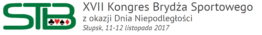 wyniki końcoweSłupskie Towarzystwo Brydżowe serdecznie zaprasza zaprasza do gry w XVII Kongresie Brydża Sportowego z okazji Dnia Niepodległości. W ramach Kongresu odbędzie się turniej o Podkowę Kasztanki Marszałka pod patronatem PZBS.